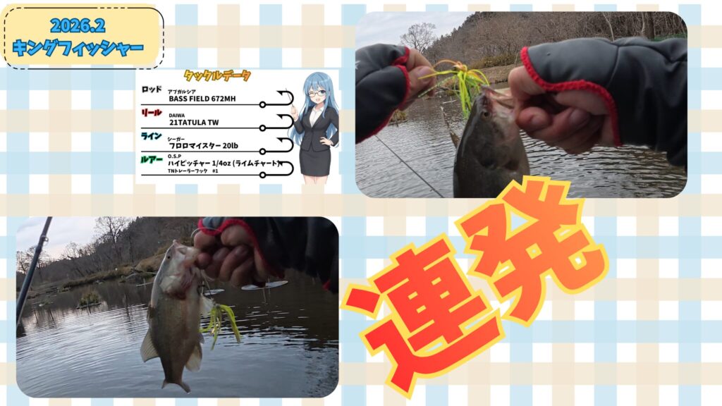 キングフィッシャーさんは冬場でも水温が高いのがウリではありますが、やっぱりトップで釣れると気持ちいいいです!