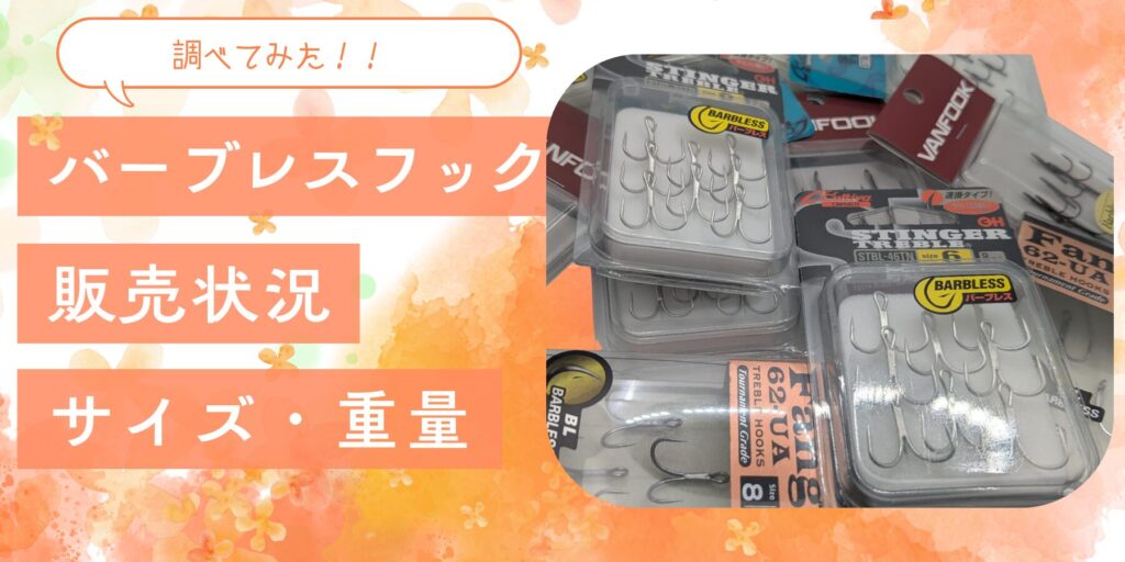 バス釣りで使えるバーブレスフックの販売状況・サイズと重量について調べてみた。
