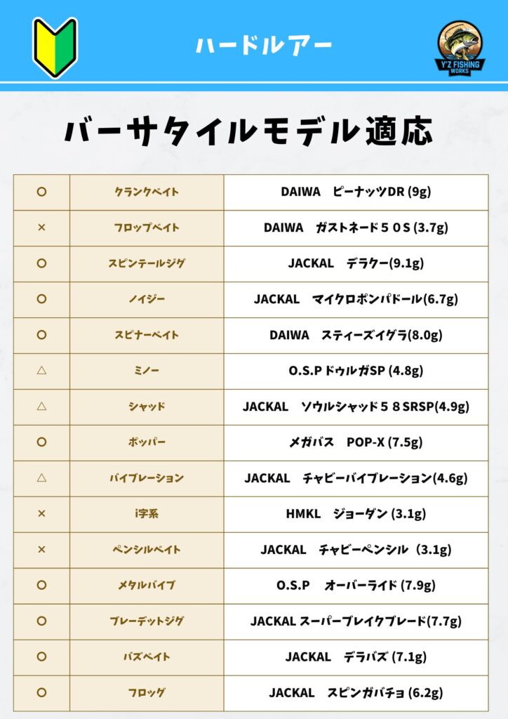 ちなみに当ブログのメインルアーへの適応状況はこんな感じです。