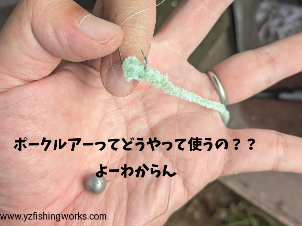 先日芦ノ湖で釣りをした際に持参したポークルアーなんですが、実のところ使い方がよくわからなくてですね。