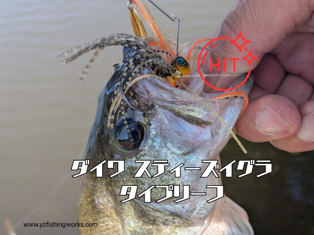 このルアーはシングルウィローのタイプなので巻き抵抗が少なく問題ないですが、別のダブルウィロータイプやコロラドタイプのスピナーベイトを巻いてみたところ、さすがにスピニングリールでは巻き重り感がすごいので2枚以上ブレードが付いているスピナーベイトはベイトリール推奨かなと感じました。