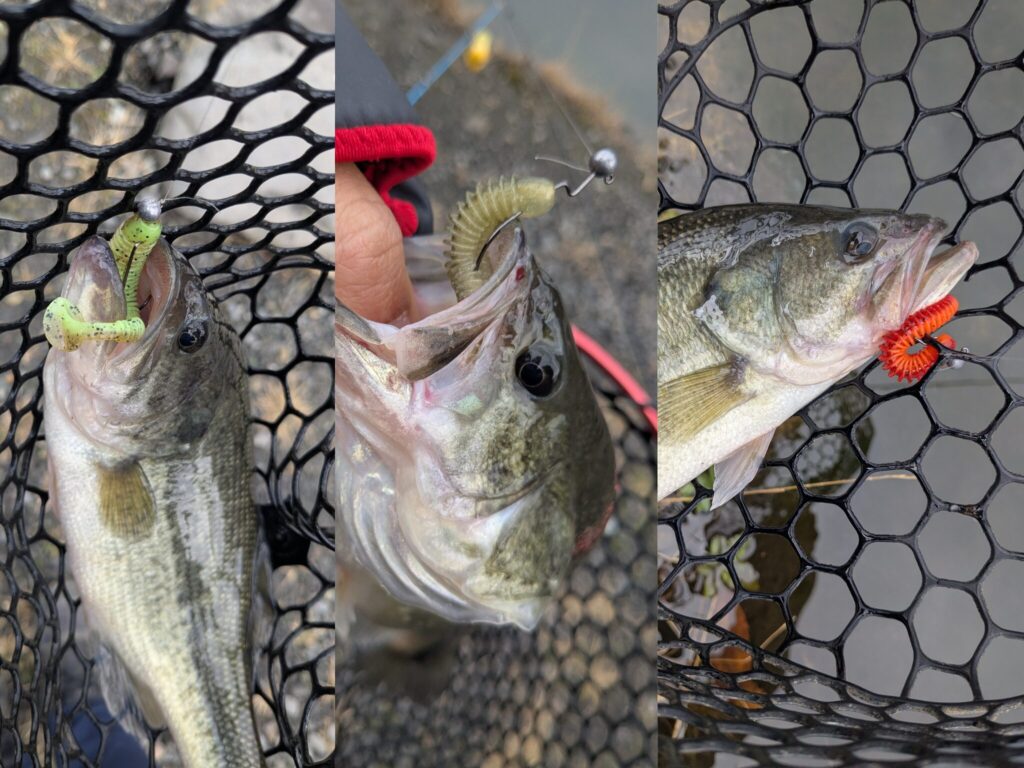 この3匹のバスですが、同じ日、同じ釣り場で釣っています。