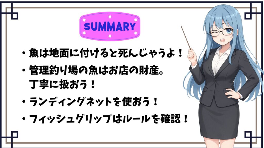 魚体に触れる前には最低限水で手を濡らしましょう。