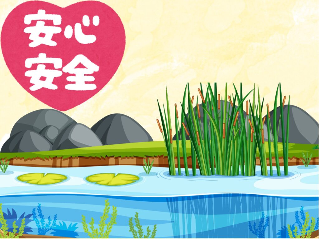水場である以上、100%安全!とは言いませんが、少なくとも野池や川で釣りをするよりは遥かに安全に配慮されていることは明白です。施設側としても事故なんて絶対起こしたくありませんからね。