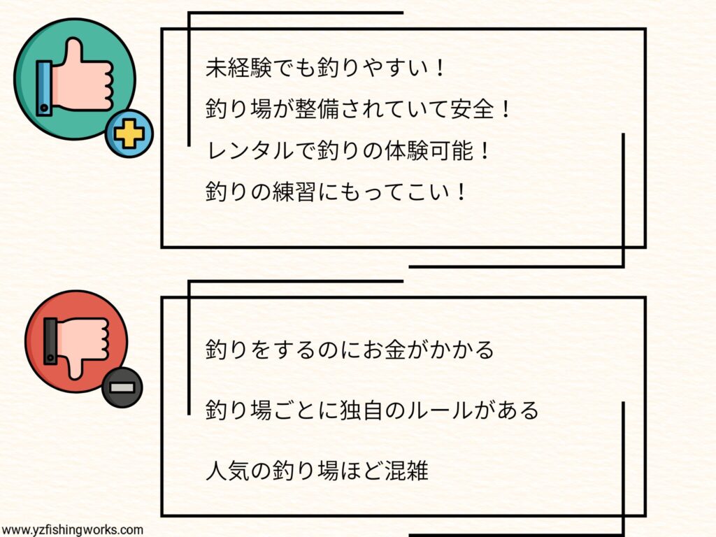それでは、管理釣り場のメリットとデメリットへいってみましょう。